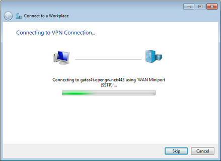 After you click "Next" , it will take 10 - 30 minutes to attempt to connect a VPN to the SSTP server.